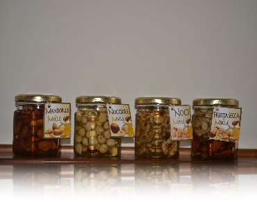 Questo prodotto è realizzato immergendo la frutta secca nel miele di Acacia.E’ una specialità che unisce la bontà del miele di Acacia con le proprietà nutrizionali della frutta secca, ricca di sali minerali e altri elementi essenziali per una dieta equilibrata.